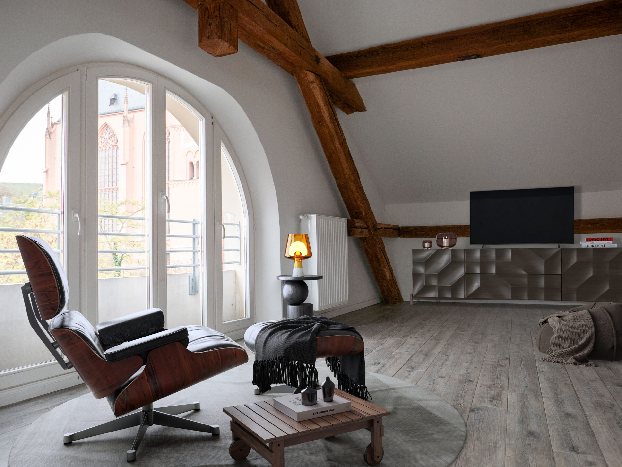 Über den Dächern des Altstadtkerns von Oppenheim entfaltet sich diese hoch individuelle Wohnlandschaft, die aus der kreativen Verbindung von drei Dachgeschosswohneinheiten und zwei Dachterrassen entstanden ist.